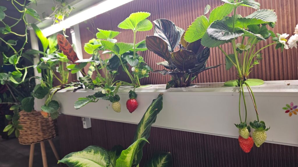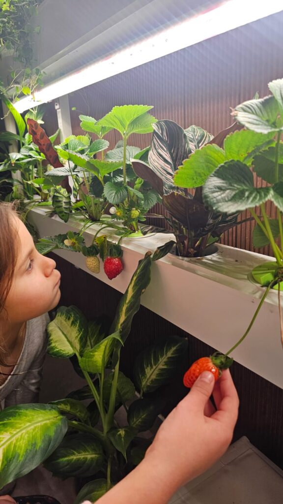 It was my daughters standing in front of the channels, scanning for tiny changes like they were reading a living story: a fresh leaf unfurling, a stem leaning toward the light, a strawberry finally blushing red enough to pick.